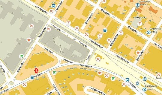 är entrén från Landsvägen 62 (see karta nedan).
