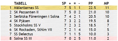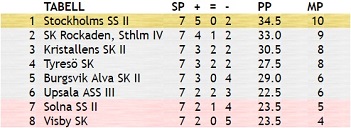 Resultat från rond 7 i vårturneringen: